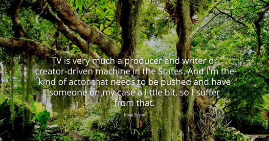 Byrne, Rose. "TV is very much a producer and writer or creator-driven machine in the States. And I'm the kind of actor that needs to be pushed and have someone on my case a little bit, so I suffer from that." FixQuotes. January 15, 2026. https://fixquotes.com/quotes/tv-is-very-much-a-producer-and-writer-or-163099/.