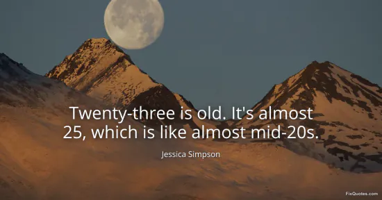 Simpson, Jessica. (2026, January 15). Twenty-three is old. It's almost 25, which is like almost mid-20s. FixQuotes. https://fixquotes.com/quotes/twenty-three-is-old-its-almost-25-which-is-like-69004/