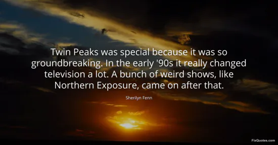Fenn, Sherilyn. "Twin Peaks was special because it was so groundbreaking. In the early '90s it really changed television a lot. A bunch of weird shows, like Northern Exposure, came on after that." FixQuotes. January 15, 2026. https://fixquotes.com/quotes/twin-peaks-was-special-because-it-was-so-159814/.