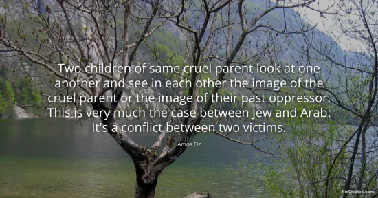 Oz, Amos. "Two children of same cruel parent look at one another and see in each other the image of the cruel parent or the image of their past oppressor. This is very much the case between Jew and Arab: It's a conflict between two victims." FixQuotes. January 15, 2026. https://fixquotes.com/quotes/two-children-of-same-cruel-parent-look-at-one-138457/.
