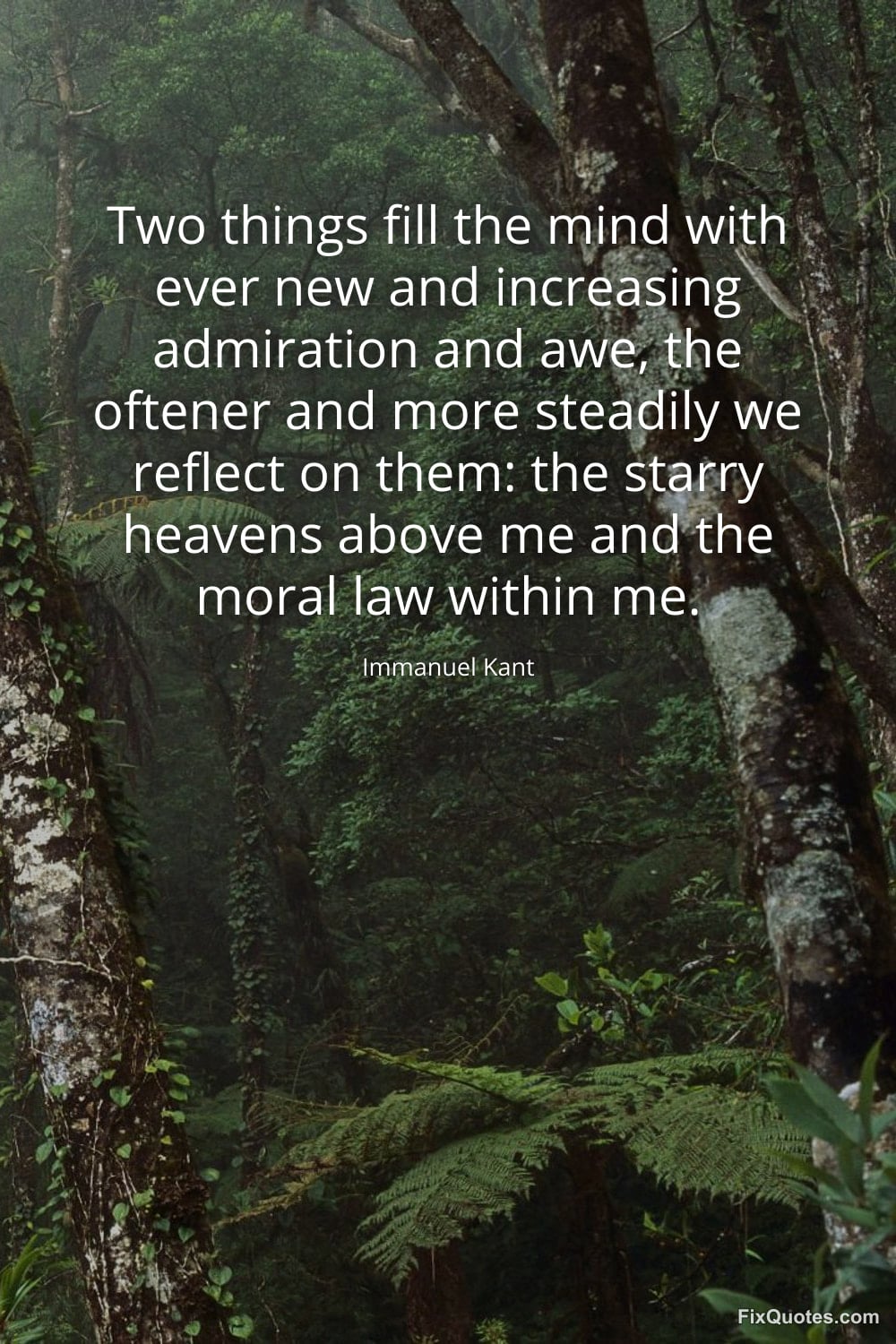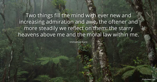 "Two things fill the mind with ever new and increasing admiration and awe, the oftener and more steadily we reflect on them: the starry heavens above me and the moral law within me." FixQuotes, 10 Feb. 2026, https://fixquotes.com/quotes/two-things-fill-the-mind-with-ever-new-and-185066/. Accessed 12 Feb. 2026.