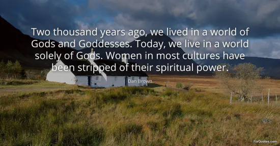 Brown, Dan. (2026, January 17). Two thousand years ago, we lived in a world of Gods and Goddesses. Today, we live in a world solely of Gods. Women in most cultures have been stripped of their spiritual power. FixQuotes. https://fixquotes.com/quotes/two-thousand-years-ago-we-lived-in-a-world-of-52300/