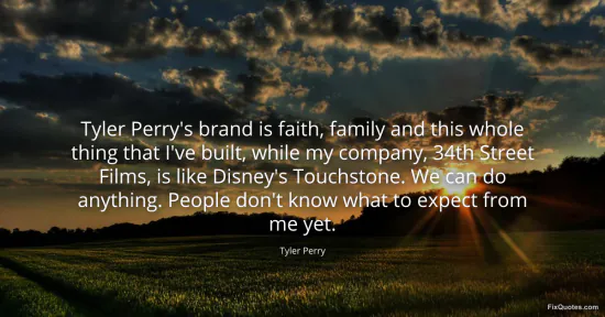 Perry, Tyler. "Tyler Perry's brand is faith, family and this whole thing that I've built, while my company, 34th Street Films, is like Disney's Touchstone. We can do anything. People don't know what to expect from me yet." FixQuotes. January 16, 2026. https://fixquotes.com/quotes/tyler-perrys-brand-is-faith-family-and-this-whole-116471/.