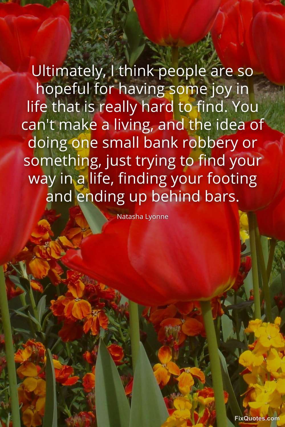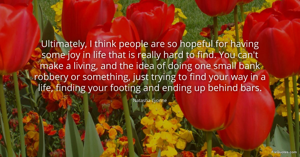Lyonne, Natasha. (2026, January 25). Ultimately, I think people are so hopeful for having some joy in life that is really hard to find. You can't make a living, and the idea of doing one small bank robbery or something, just trying to find your way in a life, finding your footing and ending up behind bars. FixQuotes. https://fixquotes.com/quotes/ultimately-i-think-people-are-so-hopeful-for-184358/