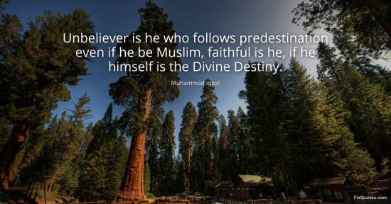 Iqbal, Muhammad. (2026, February 16). Unbeliever is he who follows predestination even if he be Muslim, faithful is he, if he himself is the Divine Destiny. FixQuotes. https://fixquotes.com/quotes/unbeliever-is-he-who-follows-predestination-even-130393/