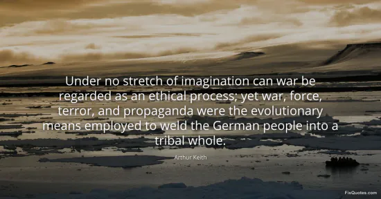 Keith, Arthur. "Under no stretch of imagination can war be regarded as an ethical process; yet war, force, terror, and propaganda were the evolutionary means employed to weld the German people into a tribal whole." FixQuotes. January 17, 2026. https://fixquotes.com/quotes/under-no-stretch-of-imagination-can-war-be-45689/.