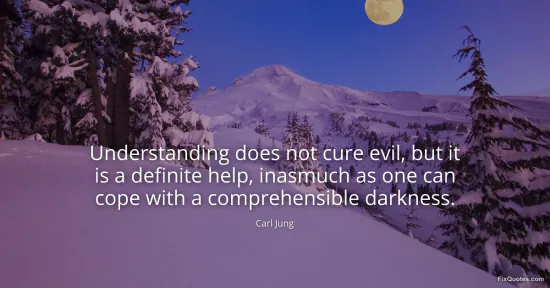 Jung, Carl. "Understanding does not cure evil, but it is a definite help, inasmuch as one can cope with a comprehensible darkness." FixQuotes. January 18, 2026. https://fixquotes.com/quotes/understanding-does-not-cure-evil-but-it-is-a-15436/.