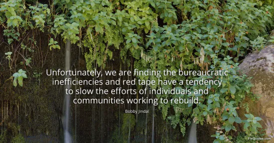 Jindal, Bobby. (2026, January 17). Unfortunately, we are finding the bureaucratic inefficiencies and red tape have a tendency to slow the efforts of individuals and communities working to rebuild. FixQuotes. https://fixquotes.com/quotes/unfortunately-we-are-finding-the-bureaucratic-39278/