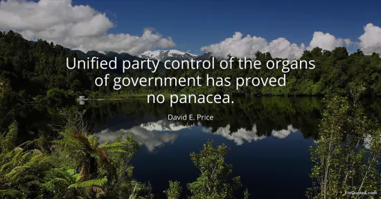 Price, David E. "Unified party control of the organs of government has proved no panacea." FixQuotes. January 15, 2026. https://fixquotes.com/quotes/unified-party-control-of-the-organs-of-government-150415/.