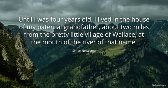 Newcomb, Simon. (2026, February 18). Until I was four years old, I lived in the house of my paternal grandfather, about two miles from the pretty little village of Wallace, at the mouth of the river of that name. FixQuotes. https://fixquotes.com/quotes/until-i-was-four-years-old-i-lived-in-the-house-91920/