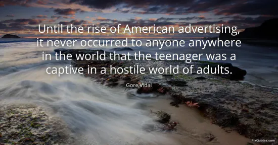 Vidal, Gore. (2026, January 17). Until the rise of American advertising, it never occurred to anyone anywhere in the world that the teenager was a captive in a hostile world of adults. FixQuotes. https://fixquotes.com/quotes/until-the-rise-of-american-advertising-it-never-68628/