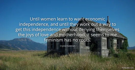 Eastman, Crystal. (2026, January 17). Until women learn to want economic independence, and until they work out a way to get this independence without denying themselves the joys of love and motherhood, it seems to me feminism has no roots. FixQuotes. https://fixquotes.com/quotes/until-women-learn-to-want-economic-independence-50005/
