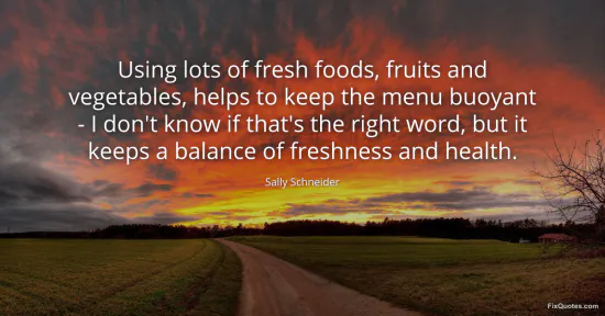 Schneider, Sally. (2026, January 17). Using lots of fresh foods, fruits and vegetables, helps to keep the menu buoyant - I don't know if that's the right word, but it keeps a balance of freshness and health. FixQuotes. https://fixquotes.com/quotes/using-lots-of-fresh-foods-fruits-and-vegetables-65274/