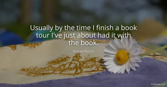 Russo, Richard. "Usually by the time I finish a book tour I've just about had it with the book." FixQuotes. January 16, 2026. https://fixquotes.com/quotes/usually-by-the-time-i-finish-a-book-tour-ive-just-109128/.