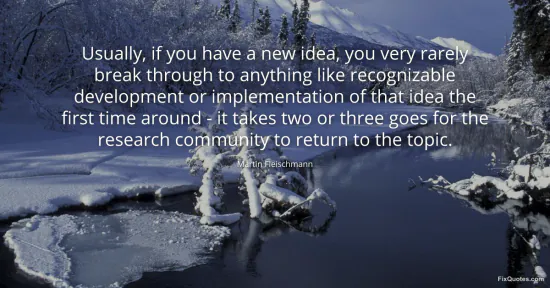 Fleischmann, Martin. (2026, January 18). Usually, if you have a new idea, you very rarely break through to anything like recognizable development or implementation of that idea the first time around - it takes two or three goes for the research community to return to the topic. FixQuotes. https://fixquotes.com/quotes/usually-if-you-have-a-new-idea-you-very-rarely-5595/