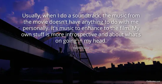Clarke, Stanley. "Usually, when I do a soundtrack, the music from the movie doesn't have anything to do with me personally. It's music to enhance to the film. My own stuff is more introspective and about what's on going in my head." FixQuotes. January 15, 2026. https://fixquotes.com/quotes/usually-when-i-do-a-soundtrack-the-music-from-the-145159/.