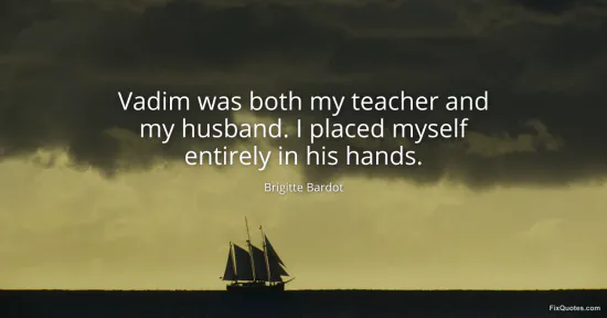 Bardot, Brigitte. (2026, January 17). Vadim was both my teacher and my husband. I placed myself entirely in his hands. FixQuotes. https://fixquotes.com/quotes/vadim-was-both-my-teacher-and-my-husband-i-placed-39311/
