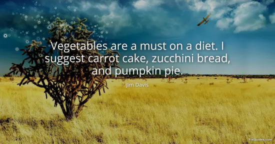 Davis, Jim. (2026, January 17). Vegetables are a must on a diet. I suggest carrot cake, zucchini bread, and pumpkin pie. FixQuotes. https://fixquotes.com/quotes/vegetables-are-a-must-on-a-diet-i-suggest-carrot-69819/