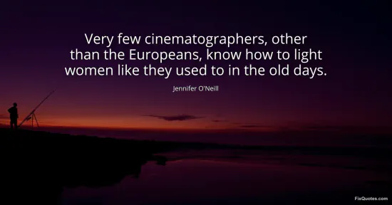 O'Neill, Jennifer. (2026, January 16). Very few cinematographers, other than the Europeans, know how to light women like they used to in the old days. FixQuotes. https://fixquotes.com/quotes/very-few-cinematographers-other-than-the-92358/