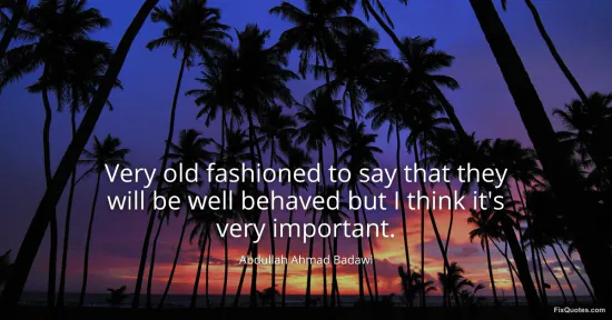 Badawi, Abdullah Ahmad. "Very old fashioned to say that they will be well behaved but I think it's very important." FixQuotes. January 16, 2026. https://fixquotes.com/quotes/very-old-fashioned-to-say-that-they-will-be-well-138580/.