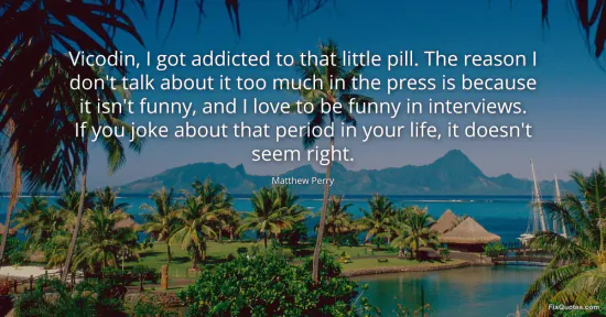 Perry, Matthew. (2026, January 17). Vicodin, I got addicted to that little pill. The reason I don't talk about it too much in the press is because it isn't funny, and I love to be funny in interviews. If you joke about that period in your life, it doesn't seem right. FixQuotes. https://fixquotes.com/quotes/vicodin-i-got-addicted-to-that-little-pill-the-70320/