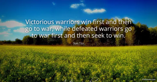 Tzu, Sun. "Victorious warriors win first and then go to war, while defeated warriors go to war first and then seek to win." FixQuotes. January 15, 2026. https://fixquotes.com/quotes/victorious-warriors-win-first-and-then-go-to-war-16558/.