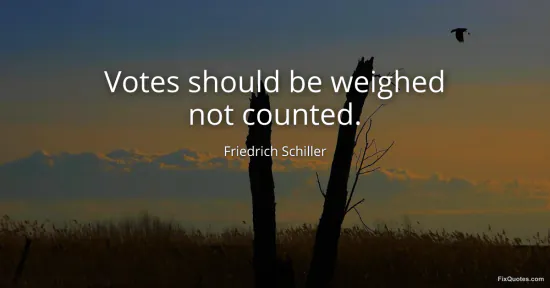 Schiller, Friedrich. (2026, January 13). Votes should be weighed not counted. FixQuotes. https://fixquotes.com/quotes/votes-should-be-weighed-not-counted-90044/