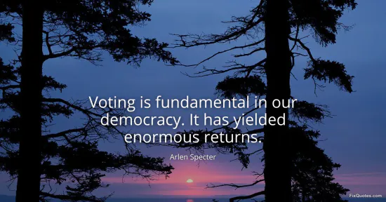 Specter, Arlen. (2026, January 15). Voting is fundamental in our democracy. It has yielded enormous returns. FixQuotes. https://fixquotes.com/quotes/voting-is-fundamental-in-our-democracy-it-has-138178/