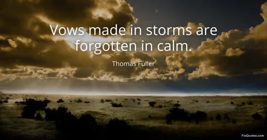 Fuller, Thomas. (2026, February 11). Vows made in storms are forgotten in calm. FixQuotes. https://fixquotes.com/quotes/vows-made-in-storms-are-forgotten-in-calm-10343/