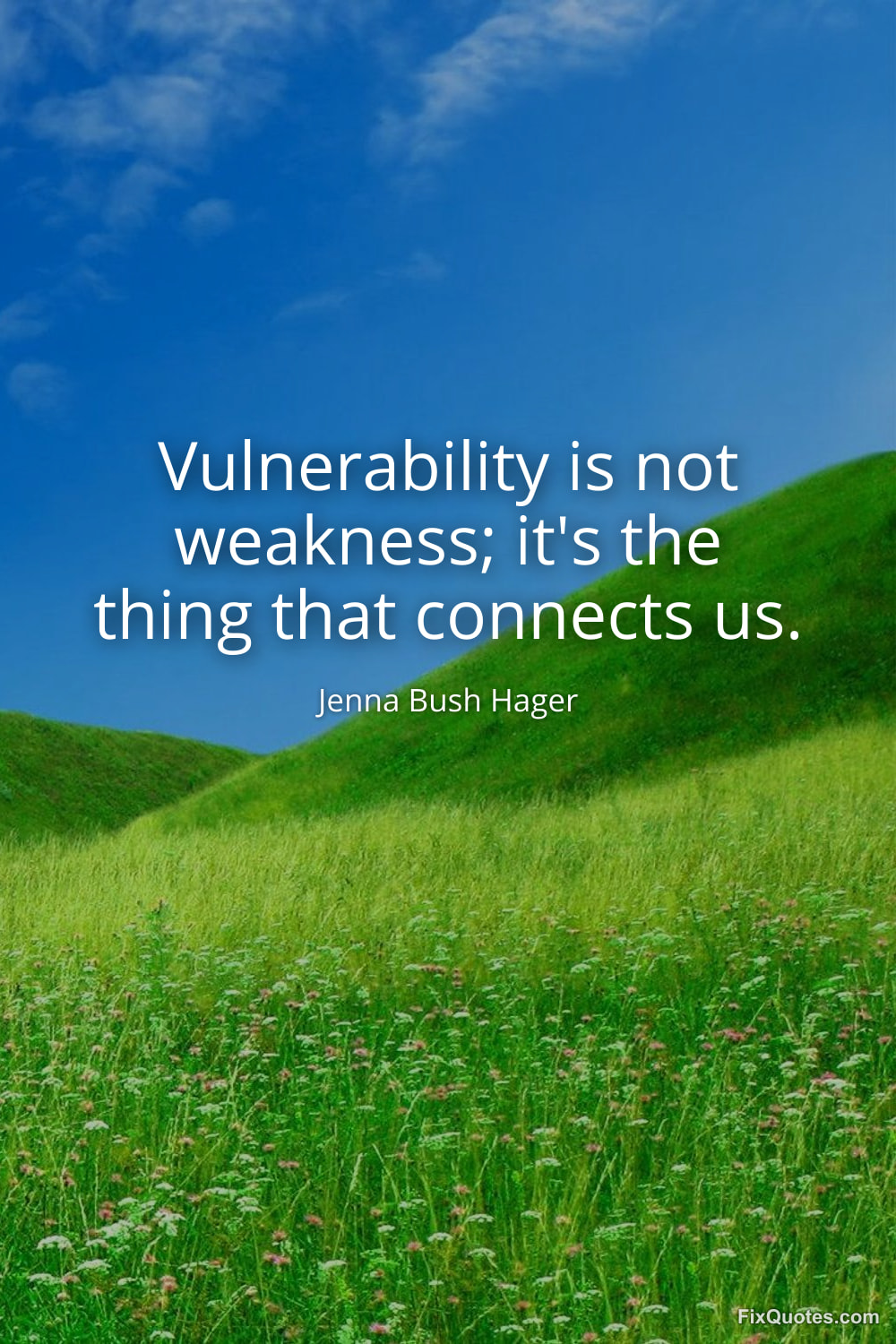 Hager, Jenna Bush. (2026, February 16). Vulnerability is not weakness; it's the thing that connects us. FixQuotes. https://fixquotes.com/quotes/vulnerability-is-not-weakness-its-the-thing-that-184579/
