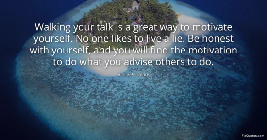 Poscente, Vince. (2026, January 16). Walking your talk is a great way to motivate yourself. No one likes to live a lie. Be honest with yourself, and you will find the motivation to do what you advise others to do. FixQuotes. https://fixquotes.com/quotes/walking-your-talk-is-a-great-way-to-motivate-122722/