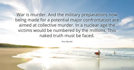 Myrdal, Alva. (2026, January 16). War is murder. And the military preparations now being made for a potential major confrontation are aimed at collective murder. In a nuclear age the victims would be numbered by the millions. This naked truth must be faced. FixQuotes. https://fixquotes.com/quotes/war-is-murder-and-the-military-preparations-now-138455/