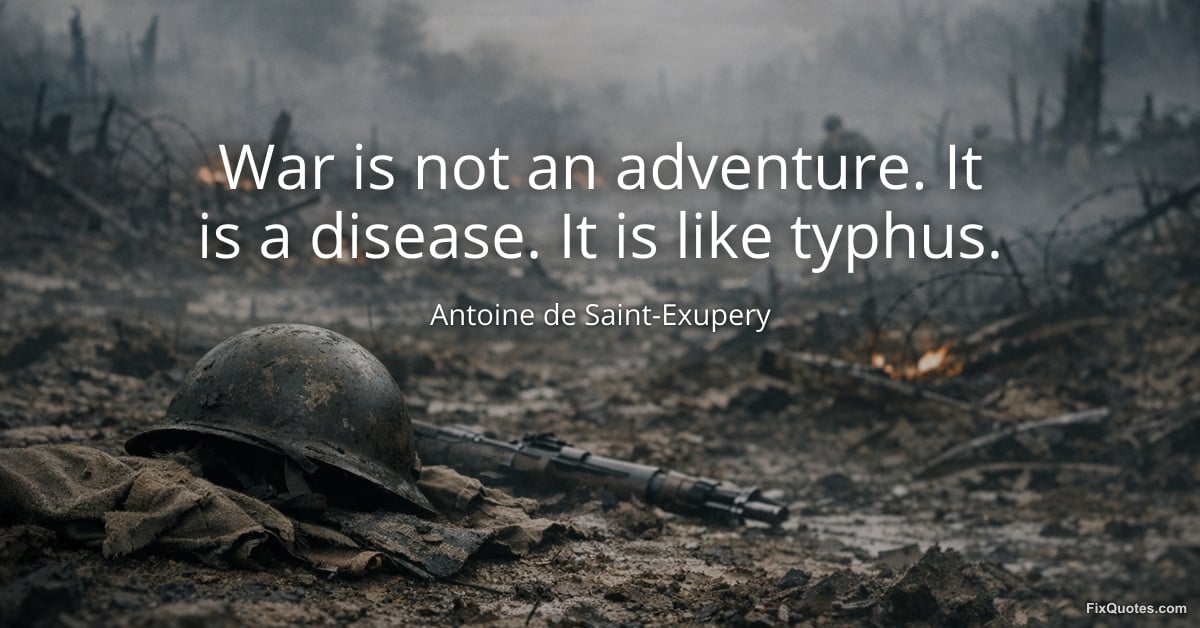 Saint-Exupery, Antoine de. (2026, March 8). War is not an adventure. It is a disease. It is like typhus. FixQuotes. https://fixquotes.com/quotes/war-is-not-an-adventure-it-is-a-disease-it-is-4152/