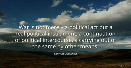 Clausewitz, Karl Von. (2026, January 18). War is not merely a political act but a real political instrument, a continuation of political intercourse, a carrying out of the same by other means. FixQuotes. https://fixquotes.com/quotes/war-is-not-merely-a-political-act-but-a-real-17042/