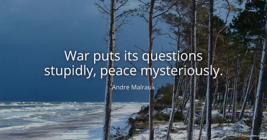 War is the blunt instrument that forces a multiple-choice test: kill or be killed, win or lose, friend or enemy. Malraux’s line skewers that coercive clarity as a kind of stupidity - not because the stakes are small, but because the frame is. War “puts its questions” the way an interrogator does: fast, binary, designed to strip nuance and hurry you into obedience. The stupidity isn’t intellectual; it’s structural. War reduces human life to logistics and slogans, then calls the reduction “realism.”