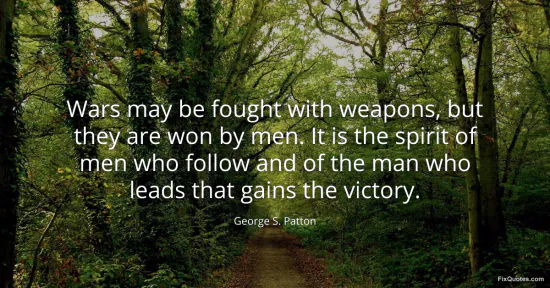 Patton, George S. (2026, January 14). Wars may be fought with weapons, but they are won by men. It is the spirit of men who follow and of the man who leads that gains the victory. FixQuotes. https://fixquotes.com/quotes/wars-may-be-fought-with-weapons-but-they-are-won-34338/