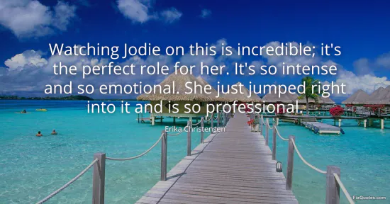 Christensen, Erika. (2026, January 15). Watching Jodie on this is incredible; it's the perfect role for her. It's so intense and so emotional. She just jumped right into it and is so professional. FixQuotes. https://fixquotes.com/quotes/watching-jodie-on-this-is-incredible-its-the-148910/