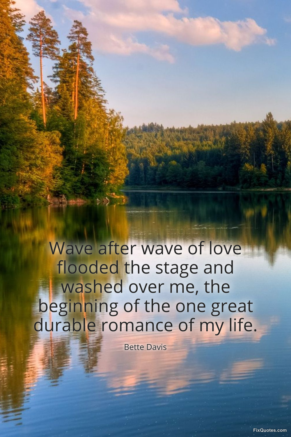 Davis, Bette. "Wave after wave of love flooded the stage and washed over me, the beginning of the one great durable romance of my life." FixQuotes. January 17, 2026. https://fixquotes.com/quotes/wave-after-wave-of-love-flooded-the-stage-and-42098/.