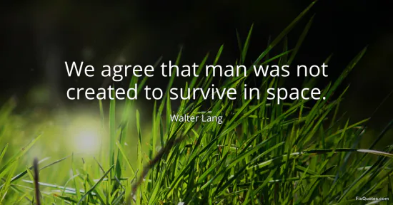 Lang, Walter. "We agree that man was not created to survive in space." FixQuotes. January 15, 2026. https://fixquotes.com/quotes/we-agree-that-man-was-not-created-to-survive-in-148220/.
