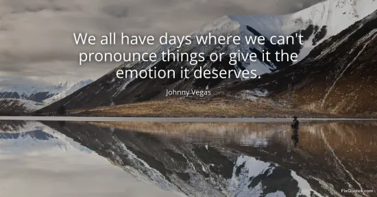 Vegas, Johnny. "We all have days where we can't pronounce things or give it the emotion it deserves." FixQuotes. January 15, 2026. https://fixquotes.com/quotes/we-all-have-days-where-we-cant-pronounce-things-148665/.