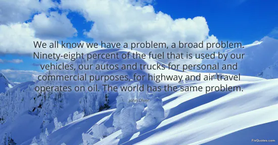 "We all know we have a problem, a broad problem. Ninety-eight percent of the fuel that is used by our vehicles, our autos and trucks for personal and commercial purposes, for highway and air travel operates on oil. The world has the same problem"
