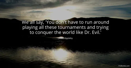 "We all say, 'You don't have to run around playing all these tournaments and trying to conquer the world like Dr. Evil.'." FixQuotes, 17 Jan. 2026, https://fixquotes.com/quotes/we-all-say-you-dont-have-to-run-around-playing-77544/. Accessed 13 Feb. 2026.