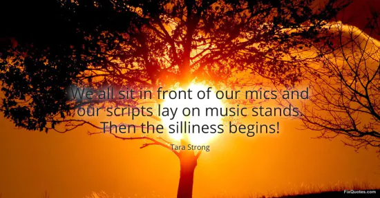 Strong, Tara. (2026, January 16). We all sit in front of our mics and our scripts lay on music stands. Then the silliness begins! FixQuotes. https://fixquotes.com/quotes/we-all-sit-in-front-of-our-mics-and-our-scripts-129417/