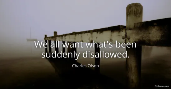 Olson, Charles. (2026, January 17). We all want what's been suddenly disallowed. FixQuotes. https://fixquotes.com/quotes/we-all-want-whats-been-suddenly-disallowed-46643/