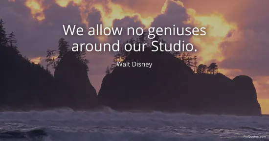 Disney, Walt. (2026, January 18). We allow no geniuses around our Studio. FixQuotes. https://fixquotes.com/quotes/we-allow-no-geniuses-around-our-studio-10736/