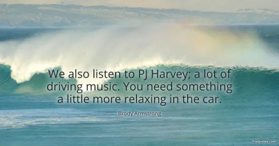 Armstrong, Brody. (2026, January 17). We also listen to PJ Harvey; a lot of driving music. You need something a little more relaxing in the car. FixQuotes. https://fixquotes.com/quotes/we-also-listen-to-pj-harvey-a-lot-of-driving-50393/