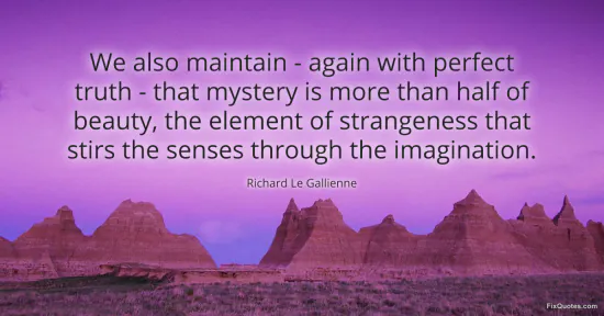 Gallienne, Richard Le. "We also maintain - again with perfect truth - that mystery is more than half of beauty, the element of strangeness that stirs the senses through the imagination." FixQuotes. January 16, 2026. https://fixquotes.com/quotes/we-also-maintain-again-with-perfect-truth-89880/.