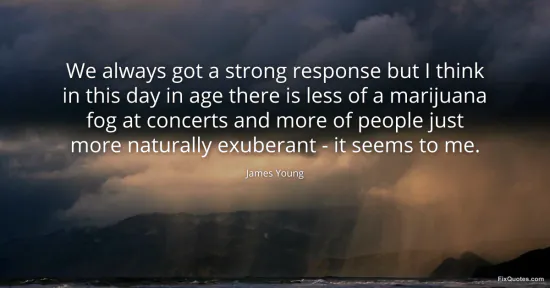 Young, James. (n.d.). We always got a strong response but I think in this day in age there is less of a marijuana fog at concerts and more of people just more naturally exuberant - it seems to me. FixQuotes. https://fixquotes.com/quotes/we-always-got-a-strong-response-but-i-think-in-90297/
