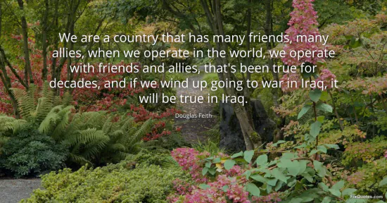 Feith, Douglas. "We are a country that has many friends, many allies, when we operate in the world, we operate with friends and allies that's been true for decades and if we wind up going to war in Iraq it will be true in Iraq." FixQuotes. January 17, 2026. https://fixquotes.com/quotes/we-are-a-country-that-has-many-friends-many-48624/.