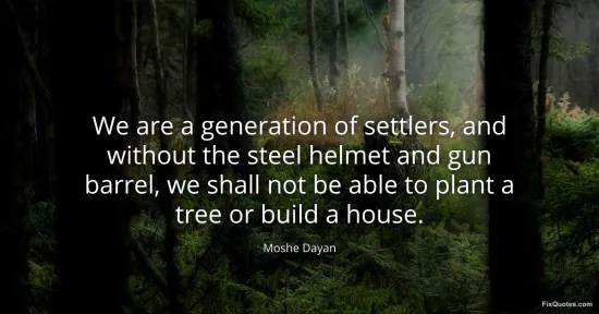 Dayan, Moshe. (2026, January 16). We are a generation of settlers, and without the steel helmet and gun barrel, we shall not be able to plant a tree or build a house. FixQuotes. https://fixquotes.com/quotes/we-are-a-generation-of-settlers-and-without-the-100970/
